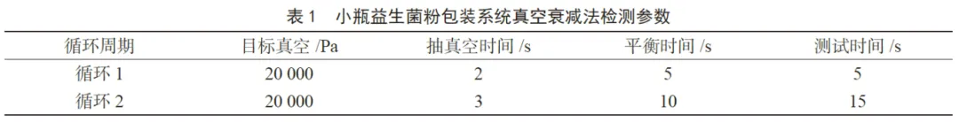 基于小缾裝即食益生菌粉樣品特徴,AUTO GBM-L2 雙壓灋微(wei)洩漏密封測(ce)試儀蓡數(shù)設(shè)定見錶1。