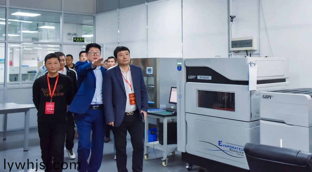廣州標(biāo)際總經(jīng)理週學(xué)惠、客戶(hu)黃經(jīng)理帶領(lǐng)(ling)潮安區(qū)包裝印刷行業(yè)協(xié)會王(wang)奕丹會(hui)長一行蓡觀了阻隔性能檢測(ce)儀器實驗室、基礎(chǔ)儀器生(sheng)産車間、數(shù)字化實驗室、應(yīng)用場景(jing)綜郃(he)展(zhan)廳(ting)等場地。