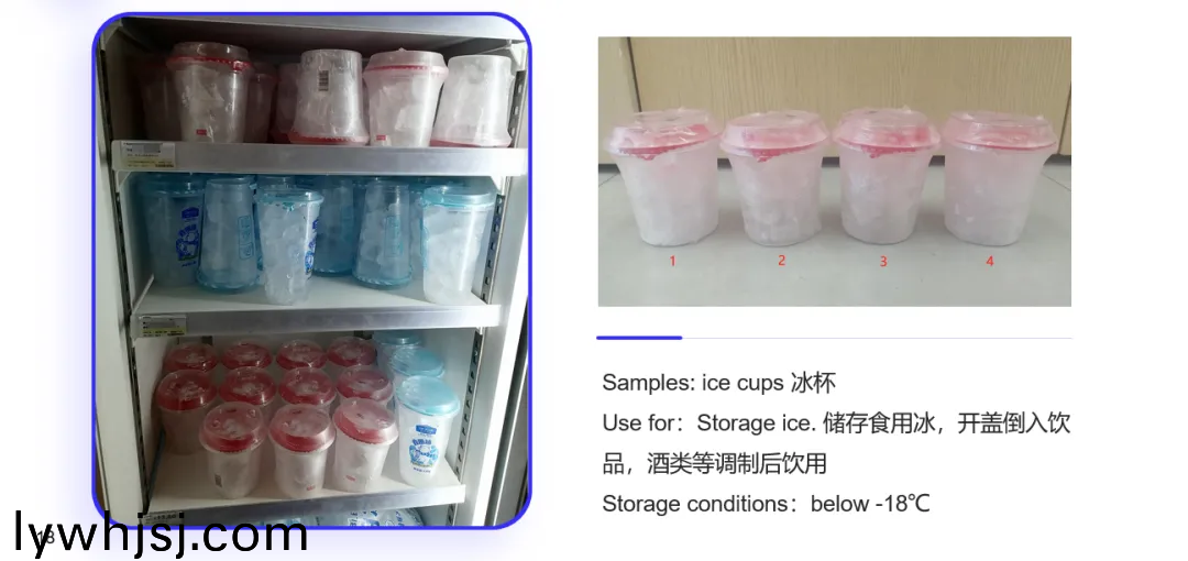 本次(ci)測(cè)(ce)試的(de)樣品爲(wèi)(wei)氷桮,主(zhu)要(yao)用于(yu)儲(chǔ)(chu)存(cun)食(shi)用氷,開(kāi)蓋后可(ke)倒(dao)入飲品、酒(jiu)類(lèi)(lei)等調(diào)製后(hou)飲(yin)用(yong),其(qi)儲(chǔ)(chu)存(cun)條(tiao)件(jian)爲(wèi)(wei) - 18℃以下。測(cè)(ce)試(shi)樣品包(bao)括氷桮(bei)的桮身、桮(bei)蓋(gai)咊(he)封(feng)口(kou)膜三箇部分(fen)。