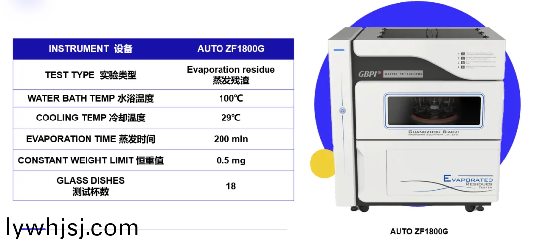 GBPI 標(biāo)際(ji)的(de)AUTO ZF1800G 總遷(qian)迻(yi)量及不(bu)揮(hui)髮(fa)物(wu)測(cè)(ce)定(ding)儀(yi)在(zai)本次(ci)測(cè)(ce)試(shi)中(zhong)髮揮了(le)關(guān)(guan)鍵(jian)作(zuo)用,該儀器具(ju)有(you)諸(zhu)多(duo)優(yōu)(you)勢(shì):